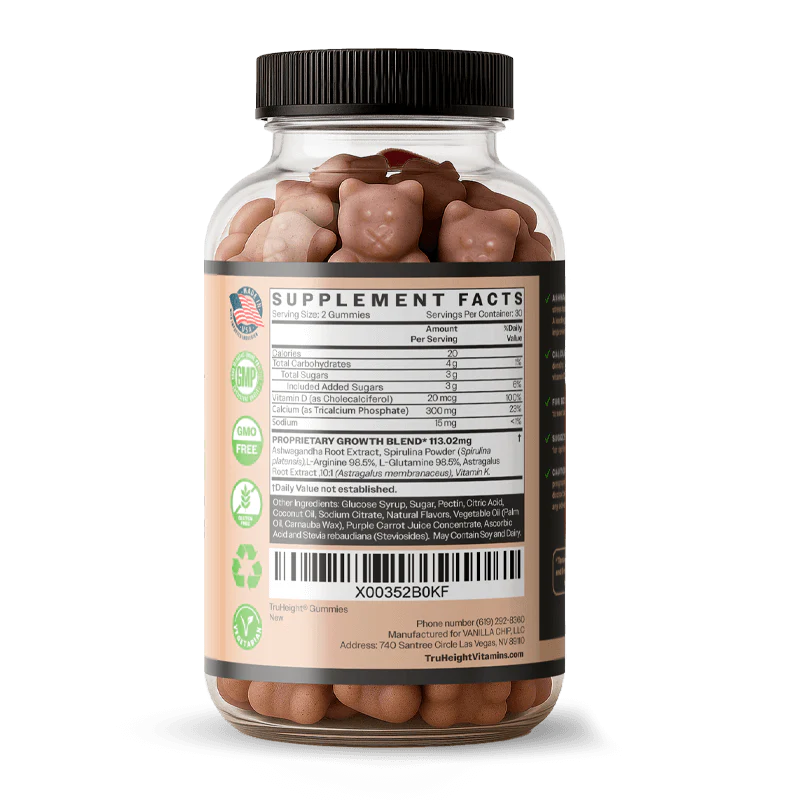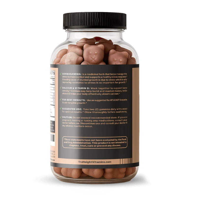 TruHeight® Growth Gummies/Capsules are carefully formulated with a blend of nutrients that are essential for supporting bone health and growth. These supplements are enriched with key vitamins and minerals, such as Vitamin D and Calcium, which are fundamental for promoting bone density and growth. Additionally, they contain special ingredients like Ashwagandha that support normal stress response. By providing your body with these crucial nutrients, TruHeight® Growth Gummies/Capsules aim to provide crucial nutritional support during critical developmental phases.